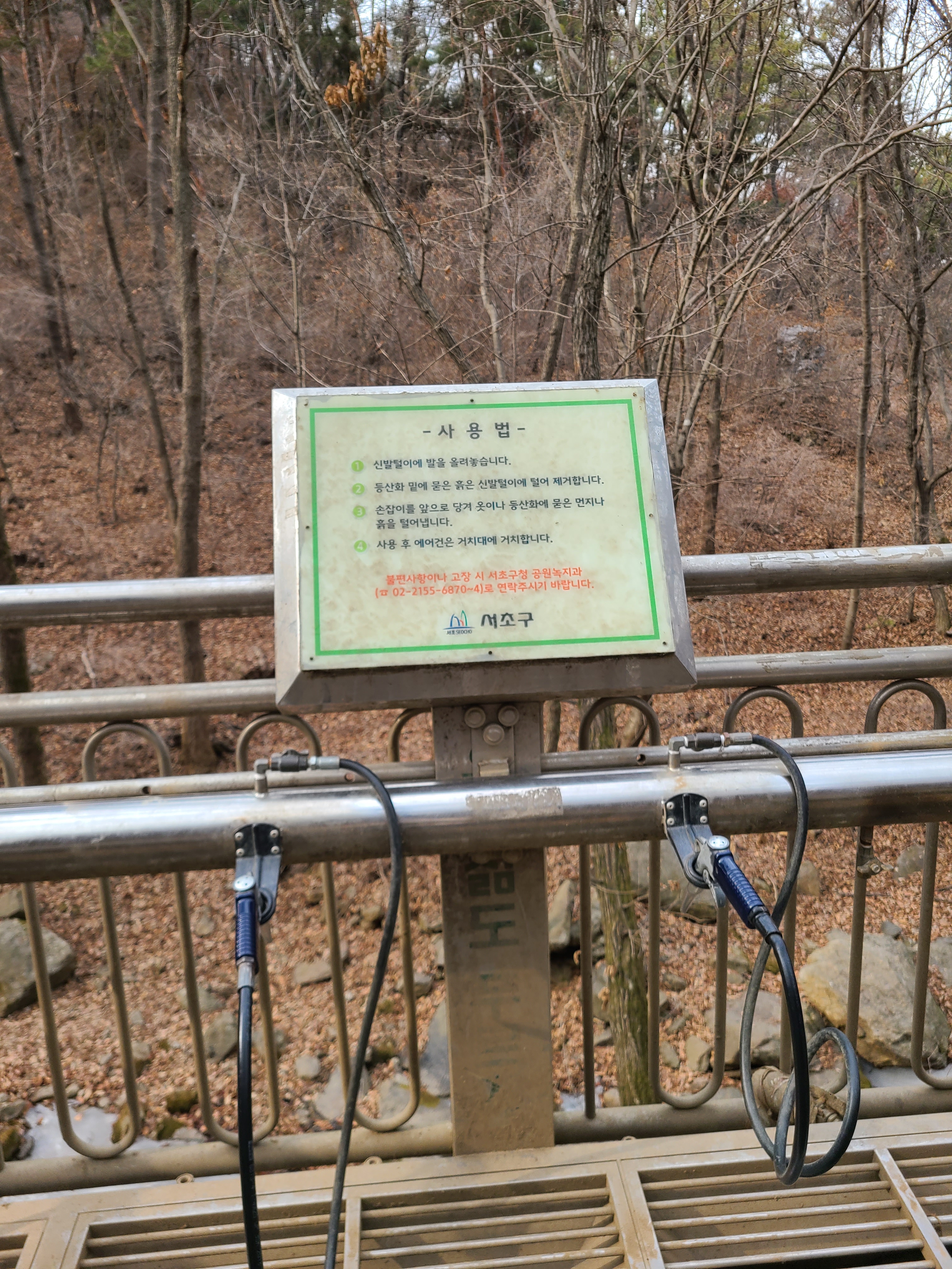 등산로 입구에 에어건 있으니 흙 묻은 등산화 꼭 털고 가세요