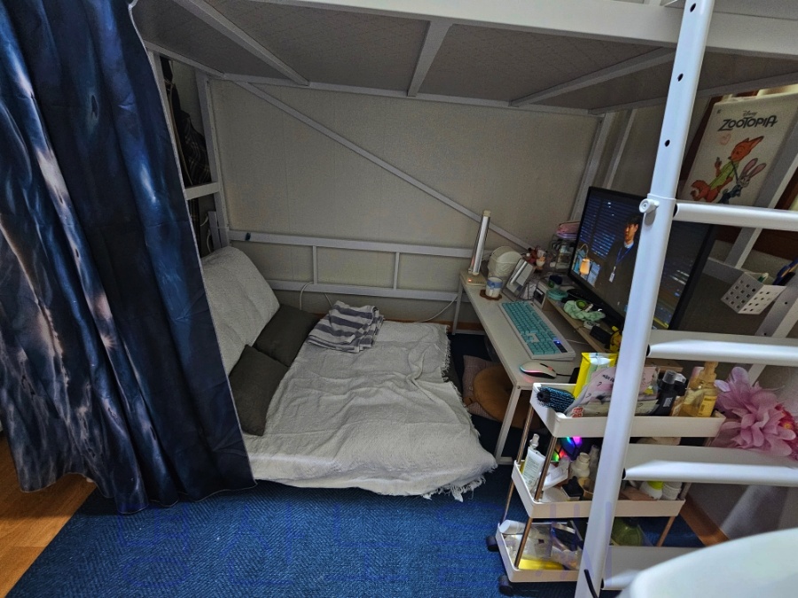 공간활용이 필요한 방이나 아지트가 갖고 싶은 아이방에 좋아요. 저처럼 2층엔 침대, 1층엔 공부공간을 만들 수 있지만 다른 활용 예시로 1층엔 침대, 2층엔 다락방의 창고 같은 공간으로 사용하기도 좋고, 또 쌍둥이 아이가 있다면 둘 다 침대로 사용하는 것도 좋아요. 다양한 아이디어로 꾸미고, 활용 가능하니 공간 활용 인테리어를 고려 중이시라면 제 글을 읽고 좋은 선택을 하시길 바랍니다~