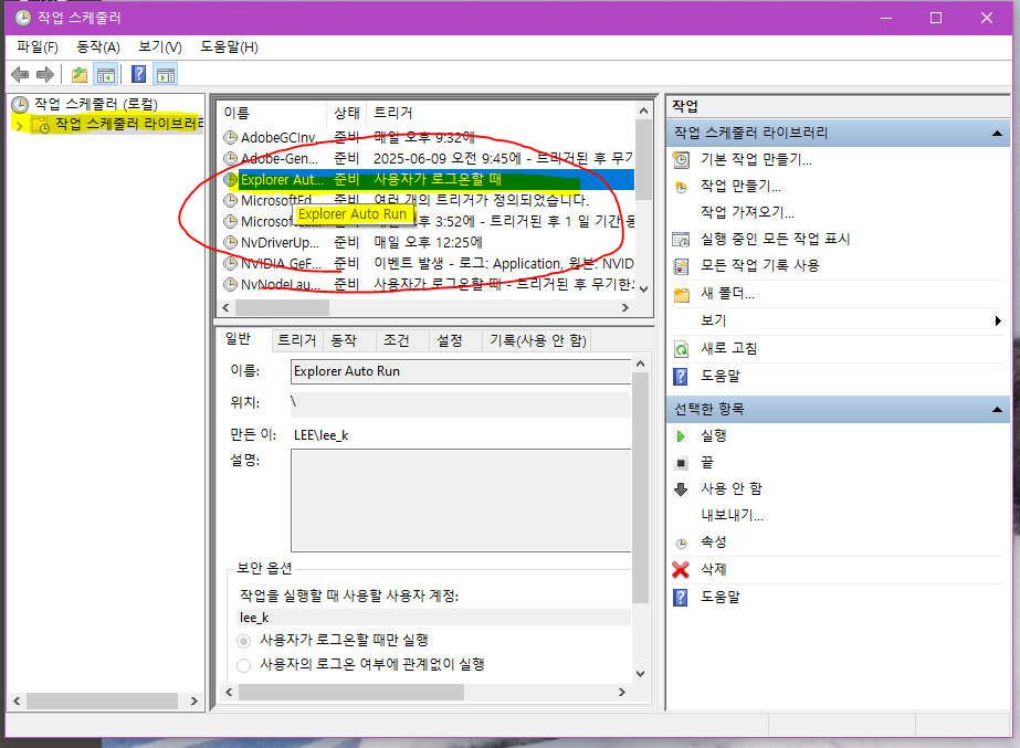 ✅ 작업 스케줄러로 explorer.exe 자동 실행 설정하기
